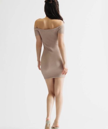 Gracelynn Ribbed Off The Shoulder Mini Dress – Beige