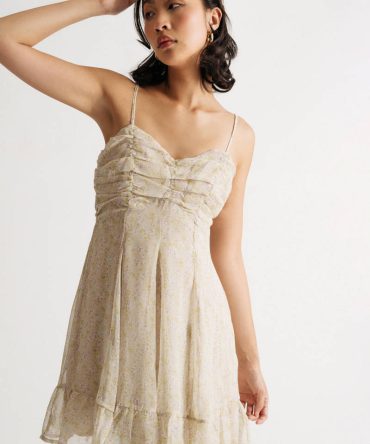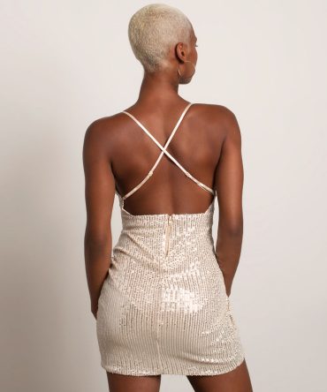 Happy Now Sequin Cross Back Mini Dress – Beige