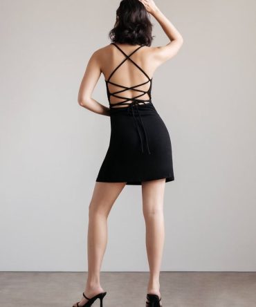 Dizzying Open Back Bodycon Mini Dress – Beige