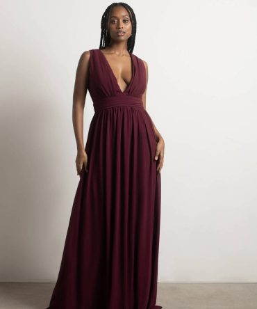 All About Tonight Surplice Empire Maxi Dress – Taupe