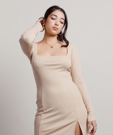 Gambit Square Neck Bodycon Mini Dress – Sand