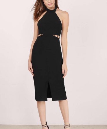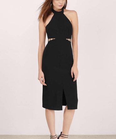 ISLA The Avenue Halter Backless Midi Dress – Black