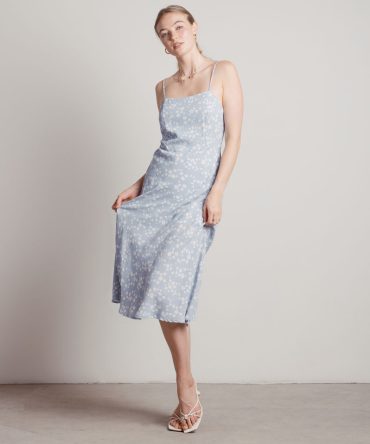 Kallie Deep V Empire Maxi Dress – Dusty Blue