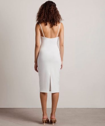 The Work Things Out White Multi Sequin Lace-Up Slit Bodycon Dress will have you feeling your best. With a fitted silhouette and a little bit of sparkle, this midi dress is perfect for those days when you need to bring your a-game. The scoop neck and spaghetti straps are both feminine and flattering, while the lace up detail adds a touch of edge.